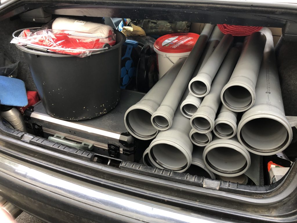 Um die Wartezeit sinnvoll zu nutzen, habe ich mir vorgenommen, im Keller schon einige Dinge vorzubereiten. So besorgte ich mir die nötigen Abwasserrohre und kümmerte mich um erste Installationen.